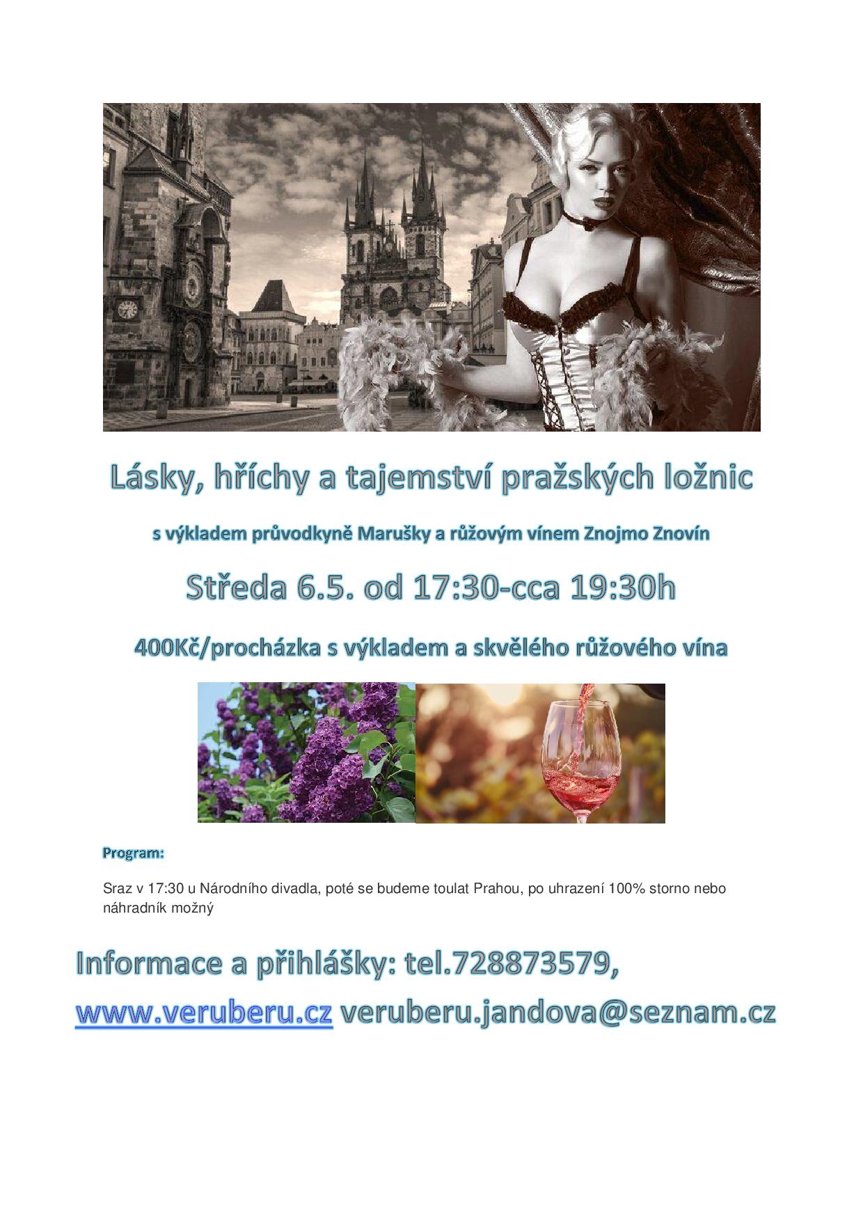 Lásky,hříchy a tajemství pražských ložnic s růžovým vínem, pojď se ponořit do historie a vyslechni si příhody a tajemství, vychutněj růžové víno Znojmo Znovín při poutavém výkladu s Maruškou a procházkou Prahou